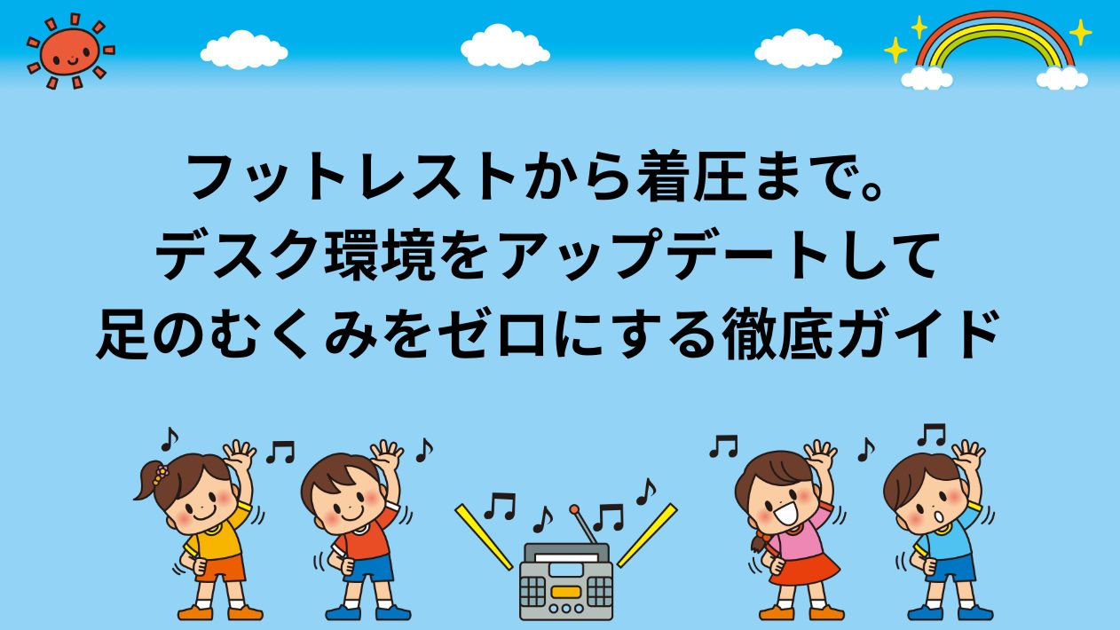 朝はすんなりと履けたはずの靴が、夕方の退勤時間になると窮屈に感じてしまう。ふくらはぎを指で押すと跡がくっきりと残り、足全体が鉛のように重く引きずりたくなる。日々のデスクワークに従事する多くの方々が、このような慢性的な足のむくみに悩まされています。長時間の座り姿勢は、私たちが想像している以上に下半身に大きな負担をかけており、放置すれば冷えや深刻な疲労感を引き起こす原因ともなります。しかし、この不快な症状は決して仕方のない職業病だと諦める必要はありません。ほんの少し身の回りのデスク環境の最適化を図り、便利なツールを日常に取り入れるだけで、驚くほど足の軽さを維持できるようになります。本記事では、なぜ足がパンパンになってしまうのかという身体のメカニズムを分かりやすく紐解きながら、フットレストや着圧ソックスといった具体的なアイテムの活用法、そして今日からすぐに実践できる簡単な改善策までを網羅して徹底的に解説していきます。快適なデスク環境を手に入れて、夕方まで軽やかな足取りをキープしましょう。